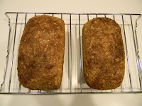 For my ingredients, I choose organic where possible but not necessary. I also prefer to use organic extra virgin coconut oil instead of vegetable oil or butter. This recipe is derived by me from a culmination of experimentation with various other recipes and sprouting tips from internet sources, real and imagined. You will need a loaf pan, 8 1/2 x 4 1/2 gives you a nice full loaf. The grains, wheat berries, are available at some grocery chains under the brand name Bob's Red Mill and at most health food stores in bulk. Bob's Red Mill is about $5 for 2 pounds and bulk is about $1 a pound, organic. You can try Whole Foods or Wegman's, too. Vital wheat gluten available at most grocery stores in baking aisle. Recipe can be doubled.